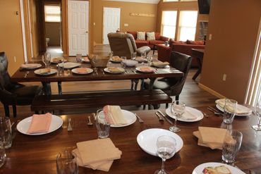 The kitchen is fully equipped to handle that special meal for your group. If you want to go outside and BBQ there is a large deck overlooking the woods and lake.